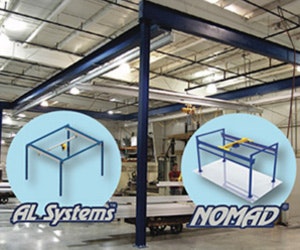 With lightweight anodized aluminum rails, EMH AL System™ Workstation Cranes are flexible and easily installed. Exclusive T-Slot design. Capacities to 2,200 lbs. Modular NOMAD® Freestanding Cranes are easily assembled, moved, and reassembled. For 2 to 10-ton capacities. Ideal when an overhead crane is impractical. Overall widths to 50 ft. 25-foot heights. For wider 60 ft. lengths, there’s NOMAD XW.