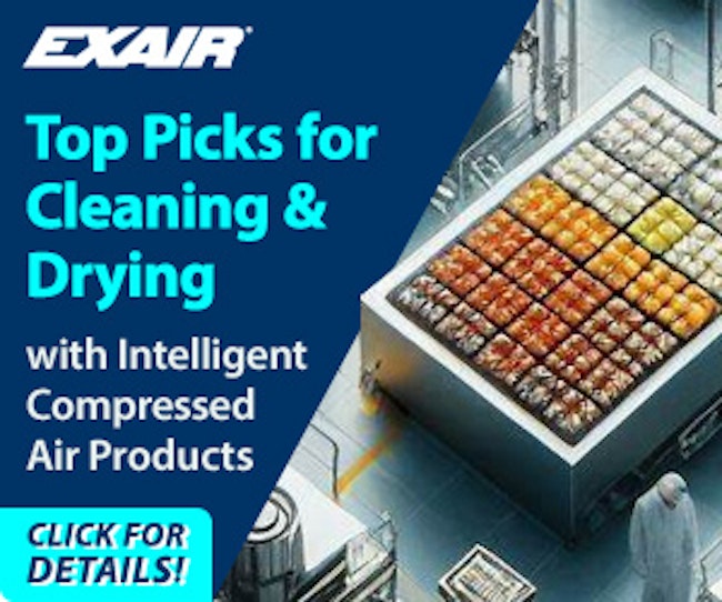 | | | | Sponsored | | Manufacturing processes often product instances where blowing off dirt, debris and water is necessary. EXAIR’s top picks for cleaning and drying are engineered specifically to reduce the amount of compressed air you use and reduce your noise level. |