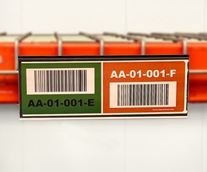 Deck•ID™ now with a grey back for more contrast and clear, glare reducing matte finish face. It’s snap on backing helps easily add signage or labels to your pallet racking with wire decking. Cold storage compatible to -20F. Designed to fit between the 2” centers of standard ¼” diameter wire decking. 2 sizes.