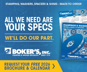 New for 2026, Boker’s redesigned their Stampings & Washers brochure specifically for design engineers and procurement teams. The valuable resource provides design guidelines, technical tools and capability overviews to support sourcing, specification and planning needs. For over 100 years, Boker’s has been trusted to provide quality components, world-class customer service and fast delivery.