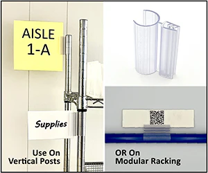 Aigner’s new EZ•Post Gripper™ Label Holder provides a convenient option for labeling posts and tubes. Heavy duty grip hinge with a flexible "C" channel snap retrofits the 1.00" diameter tubing used by major work station manufacturers. Also use on vertical posts of wire shelving units. Strong flexible gripper holds signage or label up to 1/8” thick. Tilt holder to any angle for maximum visibility and snap it off to relocate. 10/pk.