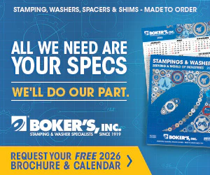 New for 2026, Boker’s redesigned their Stampings & Washers brochure specifically for design engineers and procurement teams. The valuable resource provides design guidelines, technical tools and capability overviews to support sourcing, specification and planning needs. For over 100 years, Boker’s has been trusted to provide quality components, world-class customer service and fast delivery.